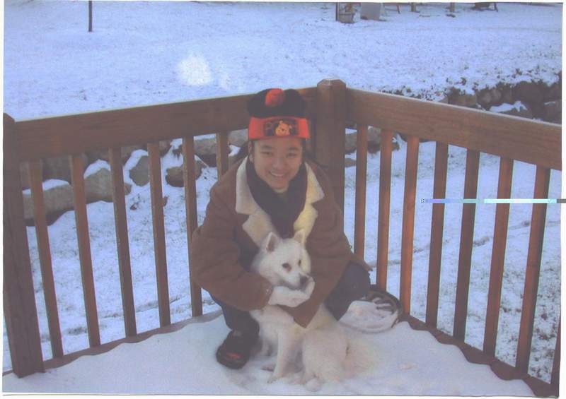Dec 2002-- 1st time experiencing winter. Cold, man!!! By the way, that's Koro, my cousin's pet. Love him...